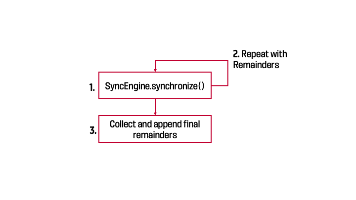 In general, Glass Onion takes a list of SyncableContent and uses the logic in a SyncEngine to sync one pair at a time. The results of all pairs are then merged together and deduplicated. Each object type corresponds to a subclass of SyncEngine that overrides synchronize_pair() to define how pairs are synchronized in synchronize(), which contains wrapper logic for the entire process.